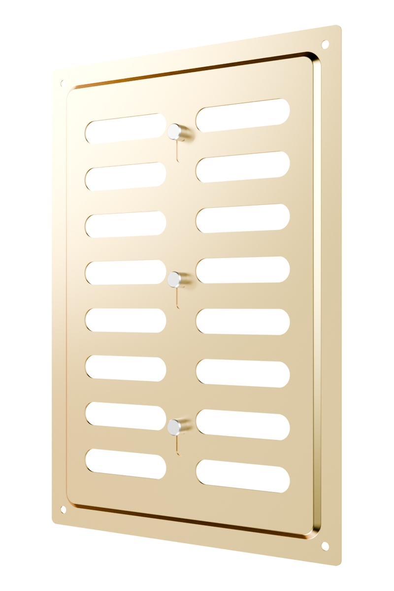 Регулируемая металлическая решетка предназначена для установки в вентиляционный проем, где требуется изменение объема поставляемого воздуха. Решетка изготовлена из стали с полимерным покрытием, устойчива к механическим воздействиям и может размещаться как внутри, так и снаружи помещений. С помощью регулятора на лицевой части решетки возможно изменить объем воздушного потока или полностью перекрыть вентиляционный канал. Регулируемая решетка используется, в том числе, для декоративного оформления вентиляционного отверстия, является элементом интерьера и дополняет общий стиль помещения. Небольшая толщина стали — 0,5 мм — позволяет монтировать решетку практически вровень со стеной, а разнообразие цветов — подобрать оптимальный вариант для любого интерьера. Материал: сталь с полимерным покрытием
