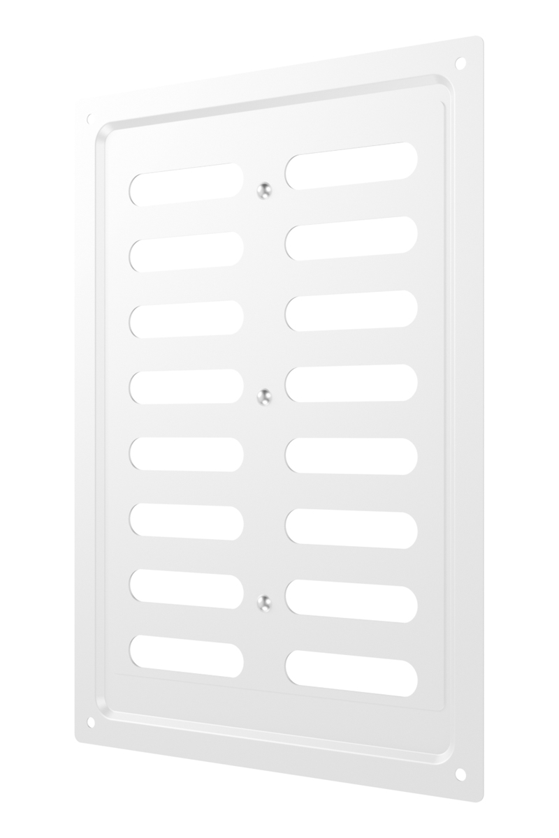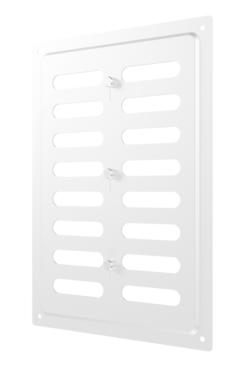 Регулируемая металлическая решетка предназначена для установки в вентиляционный проем, где требуется изменение объема поставляемого воздуха. Решетка изготовлена из стали с полимерным покрытием, устойчива к механическим воздействиям и может размещаться как внутри, так и снаружи помещений. С помощью регулятора на лицевой части решетки возможно изменить объем воздушного потока или полностью перекрыть вентиляционный канал. Регулируемая решетка используется, в том числе, для декоративного оформления вентиляционного отверстия, является элементом интерьера и дополняет общий стиль помещения. Небольшая толщина стали — 0,5 мм — позволяет монтировать решетку практически вровень со стеной, а разнообразие цветов — подобрать оптимальный вариант для любого интерьера. Материал: сталь с полимерным покрытием