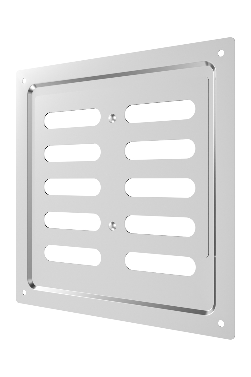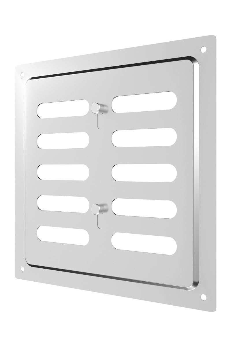 Регулируемая металлическая решетка предназначена для установки в вентиляционный проем, где требуется изменение объема поставляемого воздуха. Решетка изготовлена из стали с полимерным покрытием, устойчива к механическим воздействиям и может размещаться как внутри, так и снаружи помещений. С помощью регулятора на лицевой части решетки возможно изменить объем воздушного потока или полностью перекрыть вентиляционный канал. Регулируемая решетка используется, в том числе, для декоративного оформления вентиляционного отверстия, является элементом интерьера и дополняет общий стиль помещения. Небольшая толщина стали — 0,5 мм — позволяет монтировать решетку практически вровень со стеной, а разнообразие цветов — подобрать оптимальный вариант для любого интерьера. Материал: сталь с полимерным покрытием