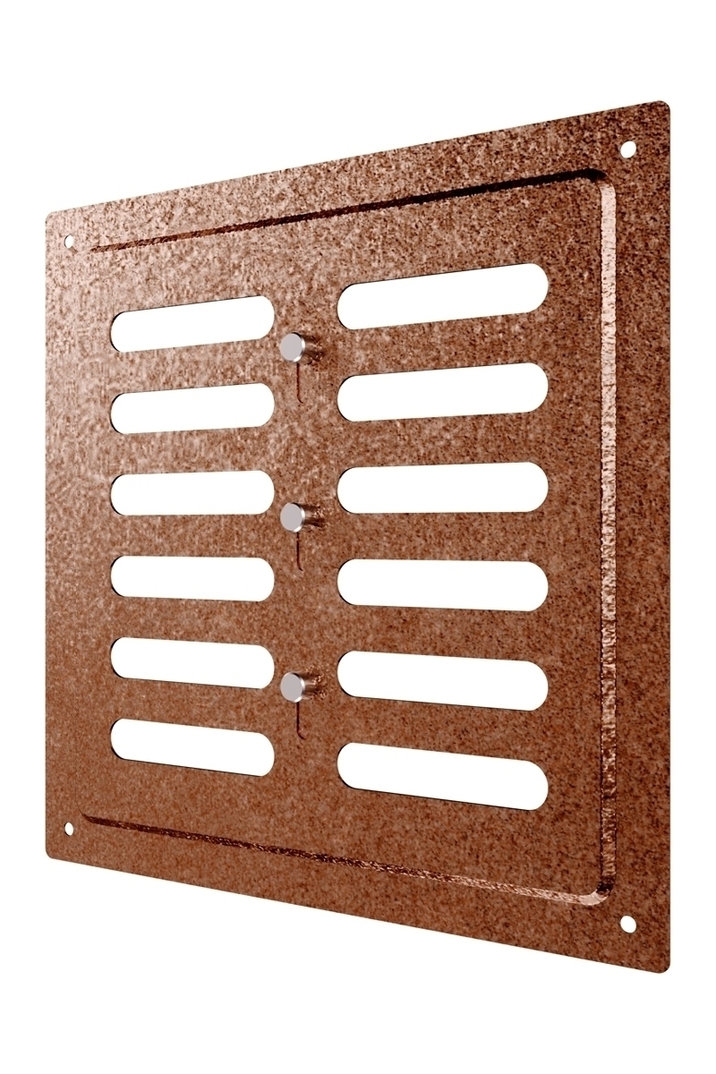 Регулируемая металлическая решетка предназначена для установки в вентиляционный проем, где требуется изменение объема поставляемого воздуха. Решетка изготовлена из стали с полимерным покрытием, устойчива к механическим воздействиям и может размещаться как внутри, так и снаружи помещений. С помощью регулятора на лицевой части решетки возможно изменить объем воздушного потока или полностью перекрыть вентиляционный канал. Регулируемая решетка используется, в том числе, для декоративного оформления вентиляционного отверстия, является элементом интерьера и дополняет общий стиль помещения. Небольшая толщина стали — 0,5 мм — позволяет монтировать решетку практически вровень со стеной, а разнообразие цветов — подобрать оптимальный вариант для любого интерьера. Материал: сталь с полимерным покрытием