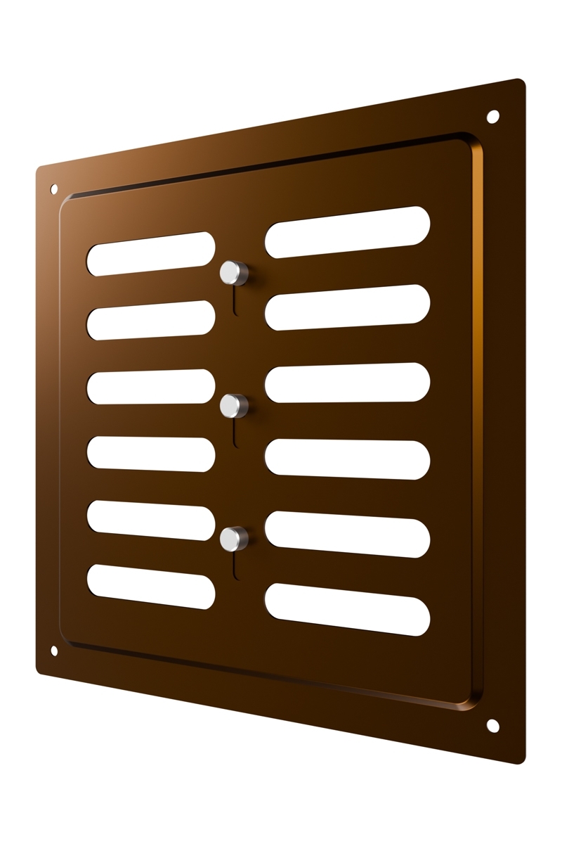 Регулируемая металлическая решетка предназначена для установки в вентиляционный проем, где требуется изменение объема поставляемого воздуха. Решетка изготовлена из стали с полимерным покрытием, устойчива к механическим воздействиям и может размещаться как внутри, так и снаружи помещений. С помощью регулятора на лицевой части решетки возможно изменить объем воздушного потока или полностью перекрыть вентиляционный канал. Регулируемая решетка используется, в том числе, для декоративного оформления вентиляционного отверстия, является элементом интерьера и дополняет общий стиль помещения. Небольшая толщина стали — 0,5 мм — позволяет монтировать решетку практически вровень со стеной, а разнообразие цветов — подобрать оптимальный вариант для любого интерьера. Материал: сталь с полимерным покрытием