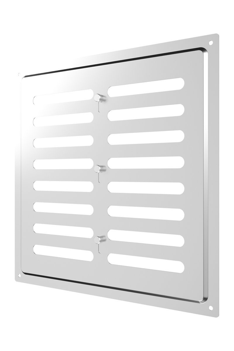 Регулируемая металлическая решетка предназначена для установки в вентиляционный проем, где требуется изменение объема поставляемого воздуха. Решетка изготовлена из стали с полимерным покрытием, устойчива к механическим воздействиям и может размещаться как внутри, так и снаружи помещений. С помощью регулятора на лицевой части решетки возможно изменить объем воздушного потока или полностью перекрыть вентиляционный канал. Регулируемая решетка используется, в том числе, для декоративного оформления вентиляционного отверстия, является элементом интерьера и дополняет общий стиль помещения. Небольшая толщина стали — 0,5 мм — позволяет монтировать решетку практически вровень со стеной, а разнообразие цветов — подобрать оптимальный вариант для любого интерьера. Материал: сталь с полимерным покрытием