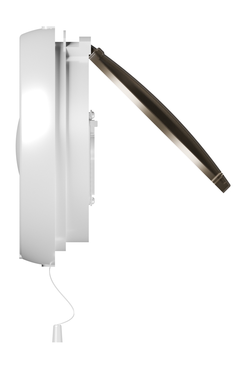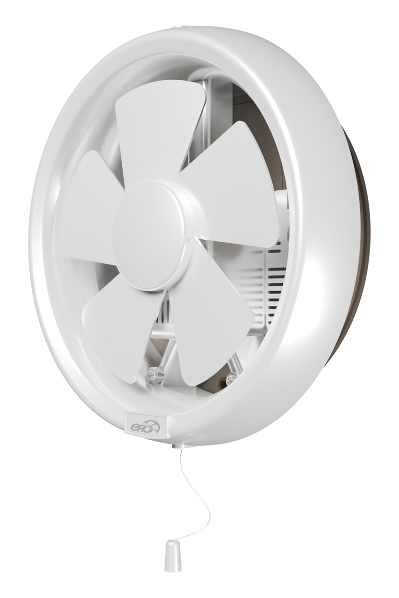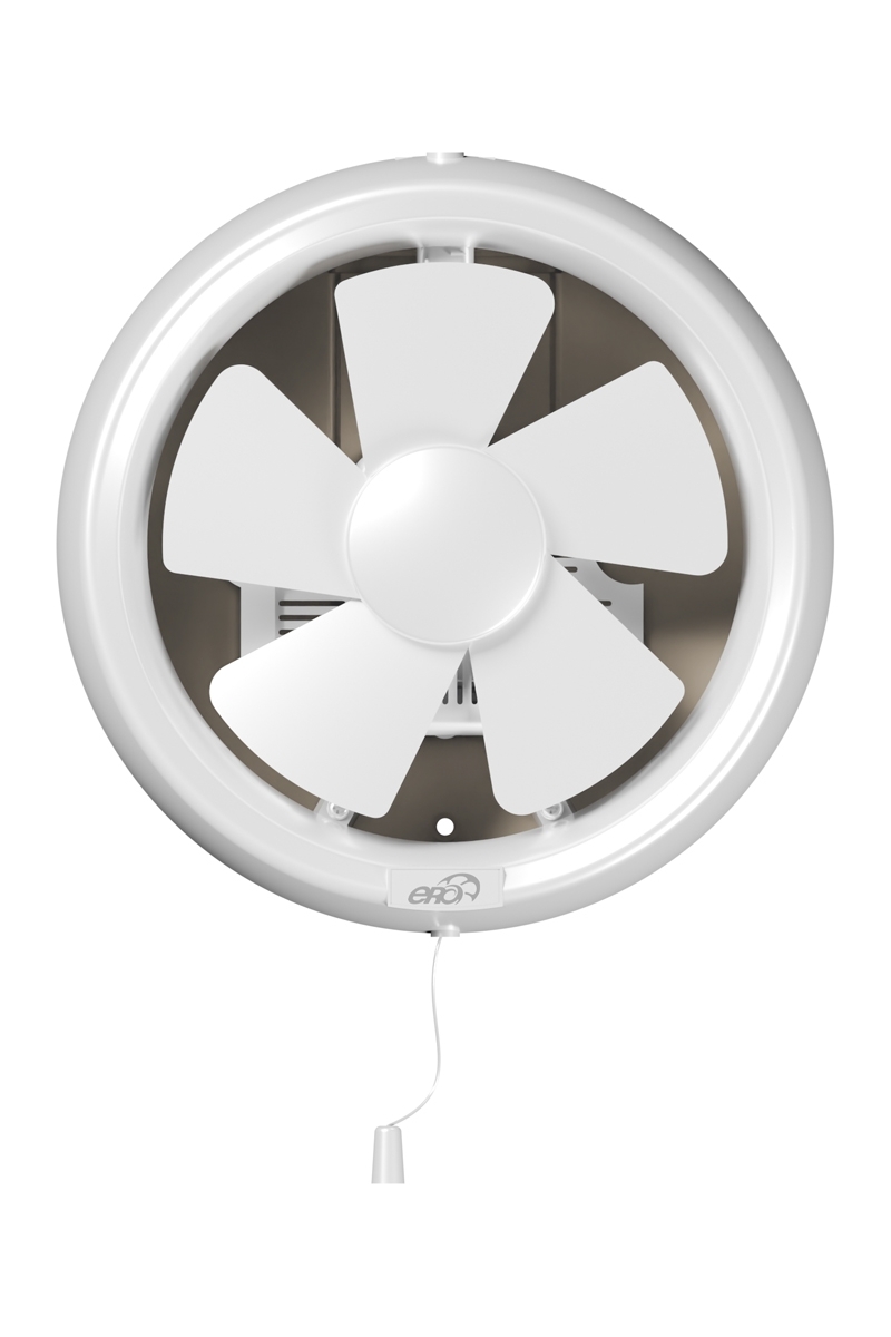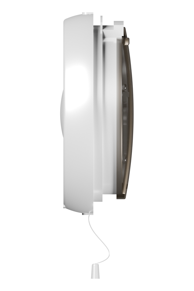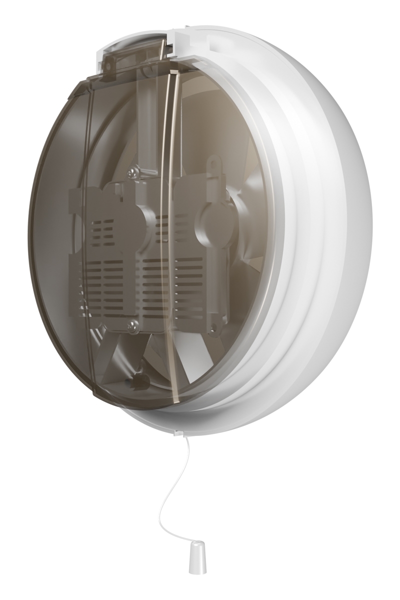 Вытяжной вентилятор для установки в окно. Для монтажа в полотно толщиной 3-7 мм. Имеет защитный клапан для исключения попадания воздуха в помещение при выключенном вентиляторе. Включение/выключение устройства и открытие/закрытие защитного клапана осуществляется шнуровым тяговым выключателем. Уровень защиты – IPX4.