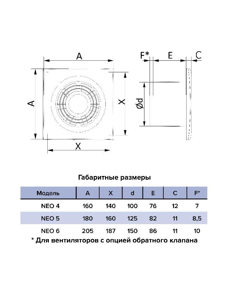 Вентилятор вытяжной NEO D125 сетка обратный клапан ET ERA