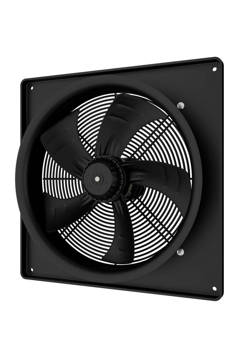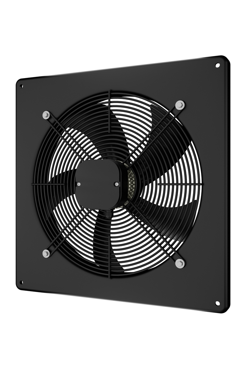 Осевой накладной вентилятор низкого давления в стальном корпусе, покрытом полимерной эмалью черного цвета. Предназначен для приточно-вытяжных систем вентиляции, а также для использования в холодильной технике для охлаждения компрессорно-конденсаторных блоков. В зависимости от способа установки может работать как на приток, так и на вытяжку воздуха. Асинхронный четырехполюсной двигатель на шарикоподшипниках имеет встроенную тепловую защиту. Монтаж устройства к несущей конструкции (стена, потолок) осуществляется с помощью квадратной пластины. Для соединения с круглыми воздуховодами соответствующего диаметра предусмотрен фланец. Степень защиты оболочки электрооборудования от проникновения твердых частиц и воды — IPX4