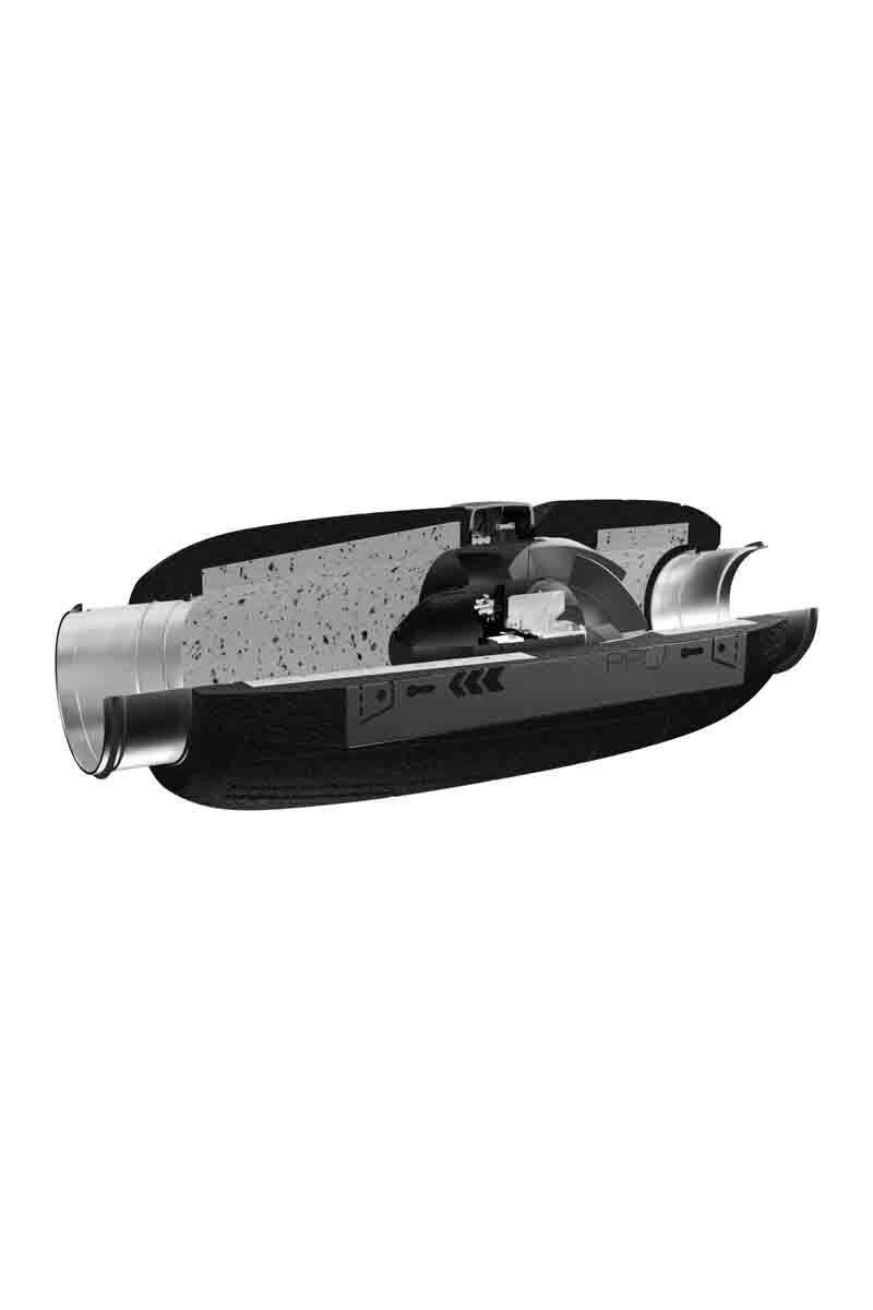 Легкий и прочный корпус из вспененного полипропилена с шумопоглощающими вставками исключает вибрации, передающиеся от вентилятора к воздуховодам, снижает шум от работы вентилятора.
