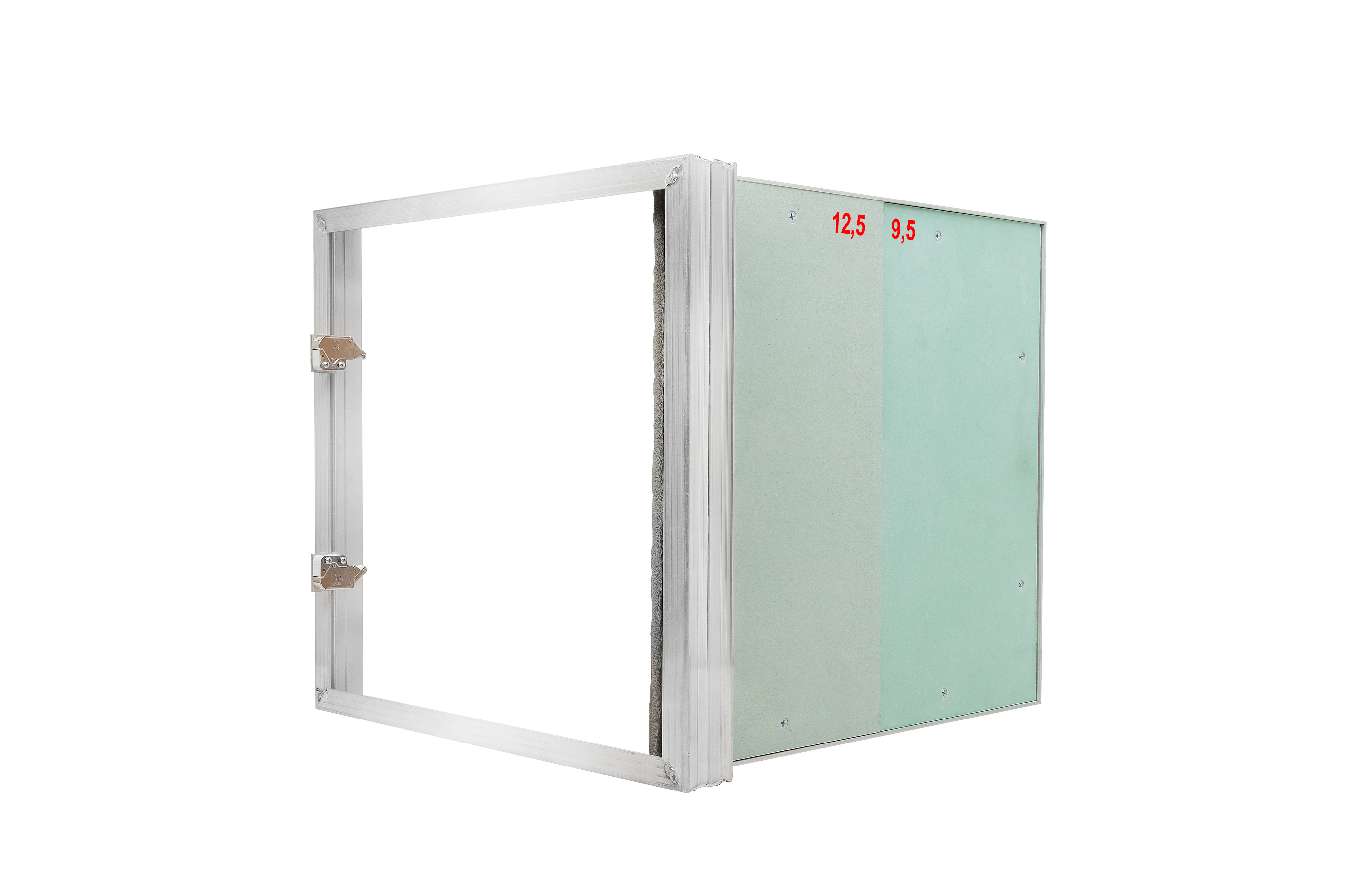 Рамка дверцы из алюминиевого профиля люка под покраску модели «Пилот Про Кант» по умолчанию заполняется ГКЛВ толщиной 9,5 мм. При необходимости, по желанию заказчика или особенности отделки модели, возможны следующие изменения и дополнения в конструкцию люка: