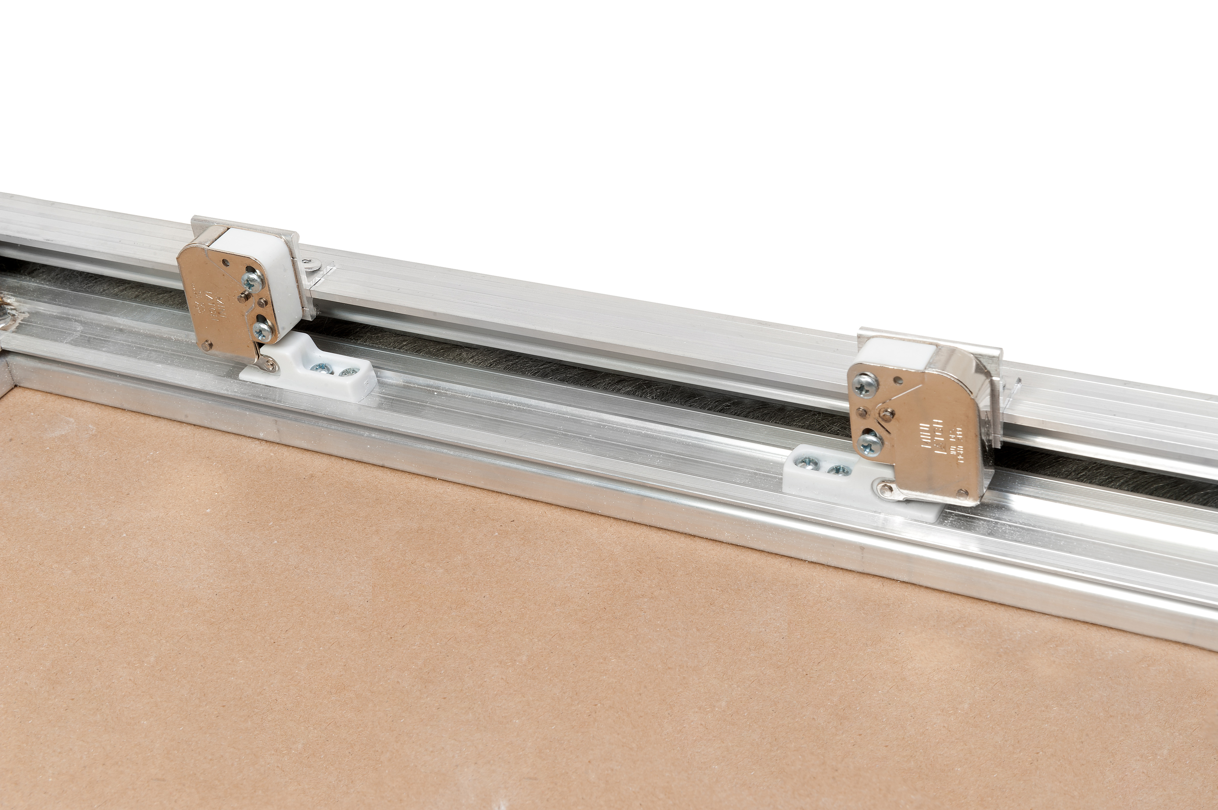 Алюминиевый профиль специальной формы, переменного сечения, делает данную конструкцию прочной и надежной в эксплуатации. Петлевые элементы состоят из специальных металлических закладных деталей из нержавеющей стали, которые позволяют изготавливать данные модели люков Больших размеров и исключают провисание дверцы в петле. Сам петлевой элемент из нержавеющей вытяжной заклепки. Щеточный уплотнитель, вклеенный в дверцу, в специальный хвостовик, защищает от пыли.