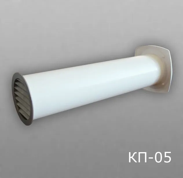 Клапан приточный состоит из пластикового воздуховода длиной от 0,5 до 1м, который монтируется в наружную стену здания. С уличной стороны он закрывается уличным воздухораспределителем.