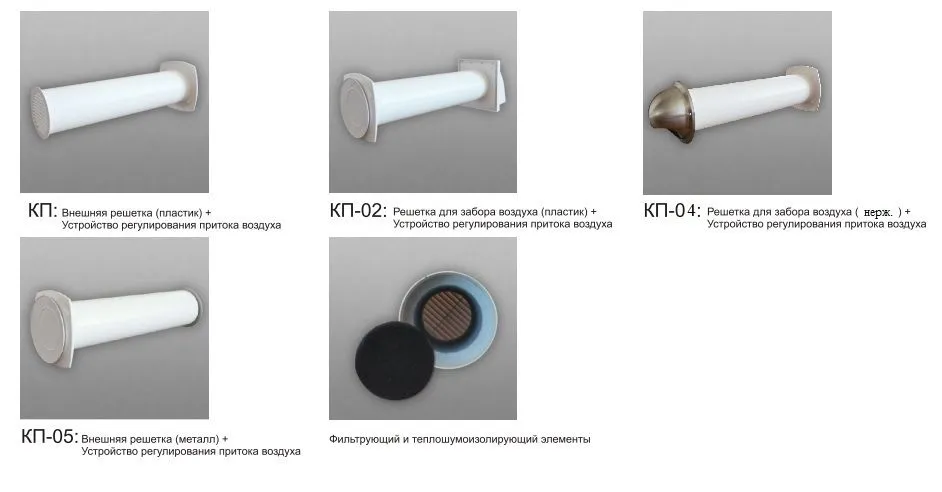Комплектация - Внешняя решетка (металл), Устройство регулирования притока воздуха, фильтрующие и теплошумоизолирующие элементы (25 см)