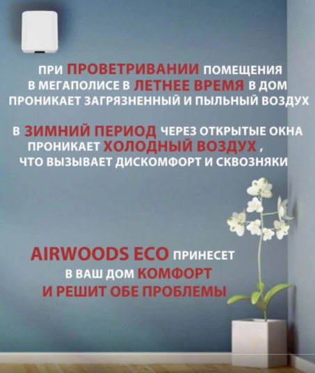 Устройство приточно-вытяжной вентиляции Airwoods ECO AV-TTW5-W с рекуперацией тепла эффективно удаляет использованный воздух, лишнюю влагу и нежелательные запахи, препятствуя появлению конденсата и росту плесени. За счет рационального дизайна и использования передовых технологий данная модель демонстрирует высокую эффективность и экономичность, обеспечивая здоровый и комфортный климат в разнообразных типах помещений.