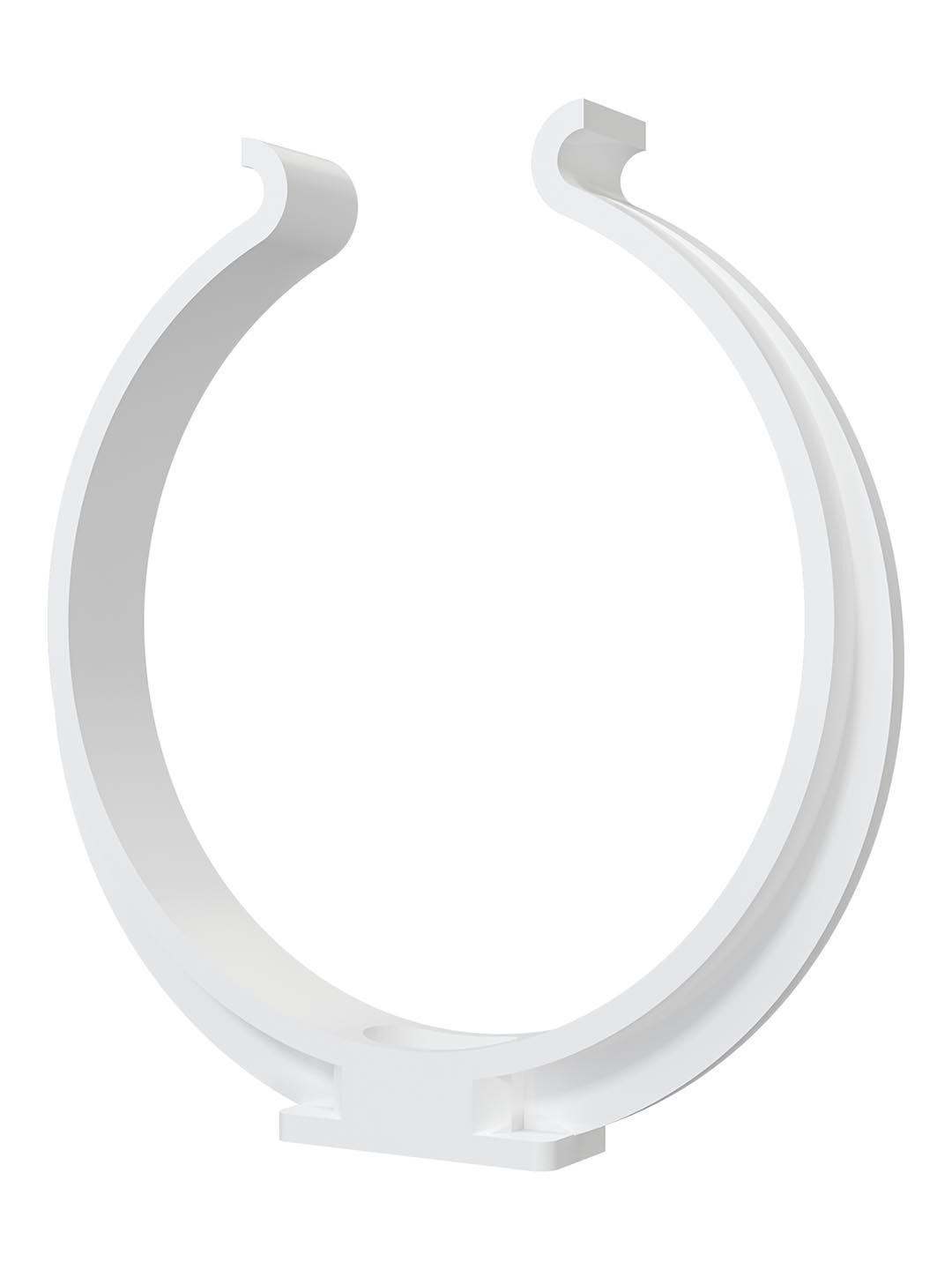 Для крепления воздуховодов соответствующего диаметра к монтажной поверхности. Крепление к месту монтажа осуществляется при помощи саморезов. Благодаря гибкости держатель можно использовать с воздуховодом примерно на 5 мм меньше и больше номинального диаметра.