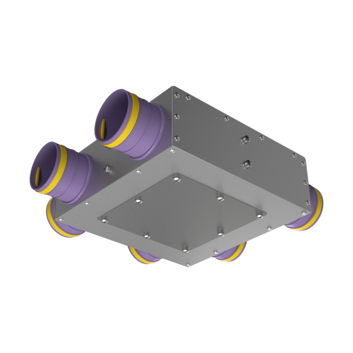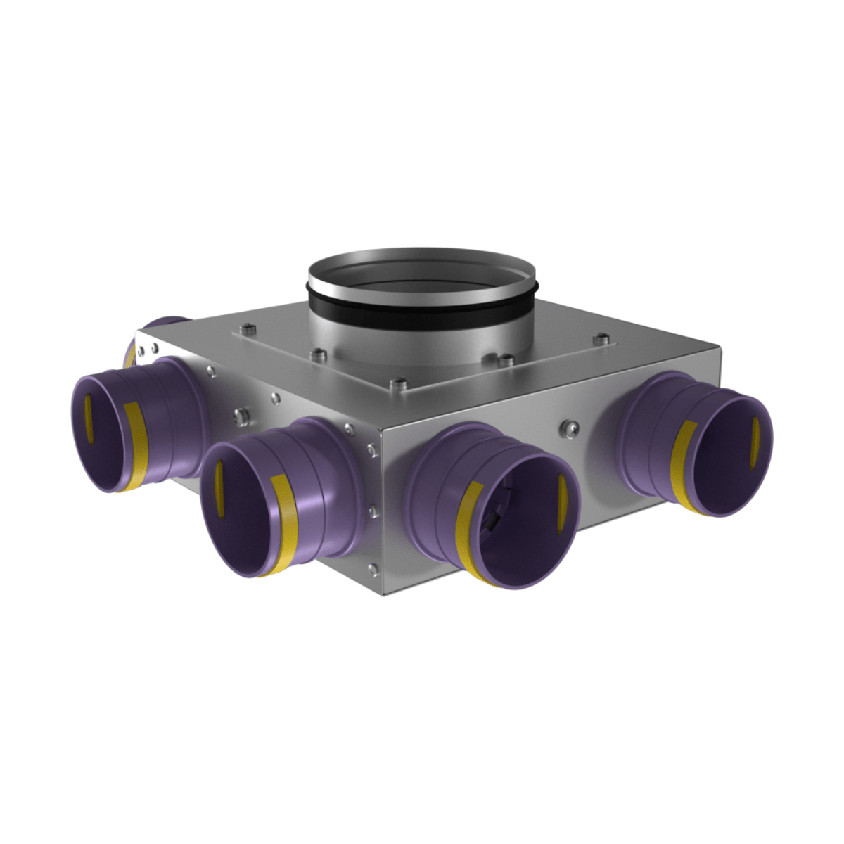 Коллектор воздухораспределительный Provent KVF 125/75×6 предназначен для распределения воздушного потока в системе вентиляции BASIC+ на основе гибких вентканалов Provent диаметром 75 мм. Подающий вентиляционный канал диаметром 125 мм с уплотнительной резинкой разделяется на 6 каналов по 75 мм.