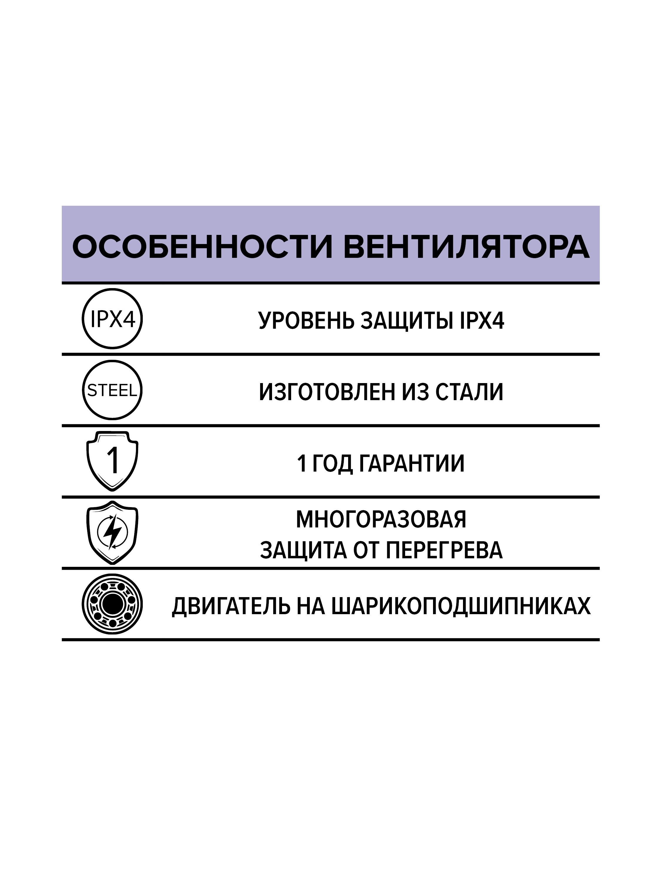 Корпус и крыльчатка изготовлены из стали с полимерным покрытием, которое защищает от коррозии и надолго сохраняет цвет.