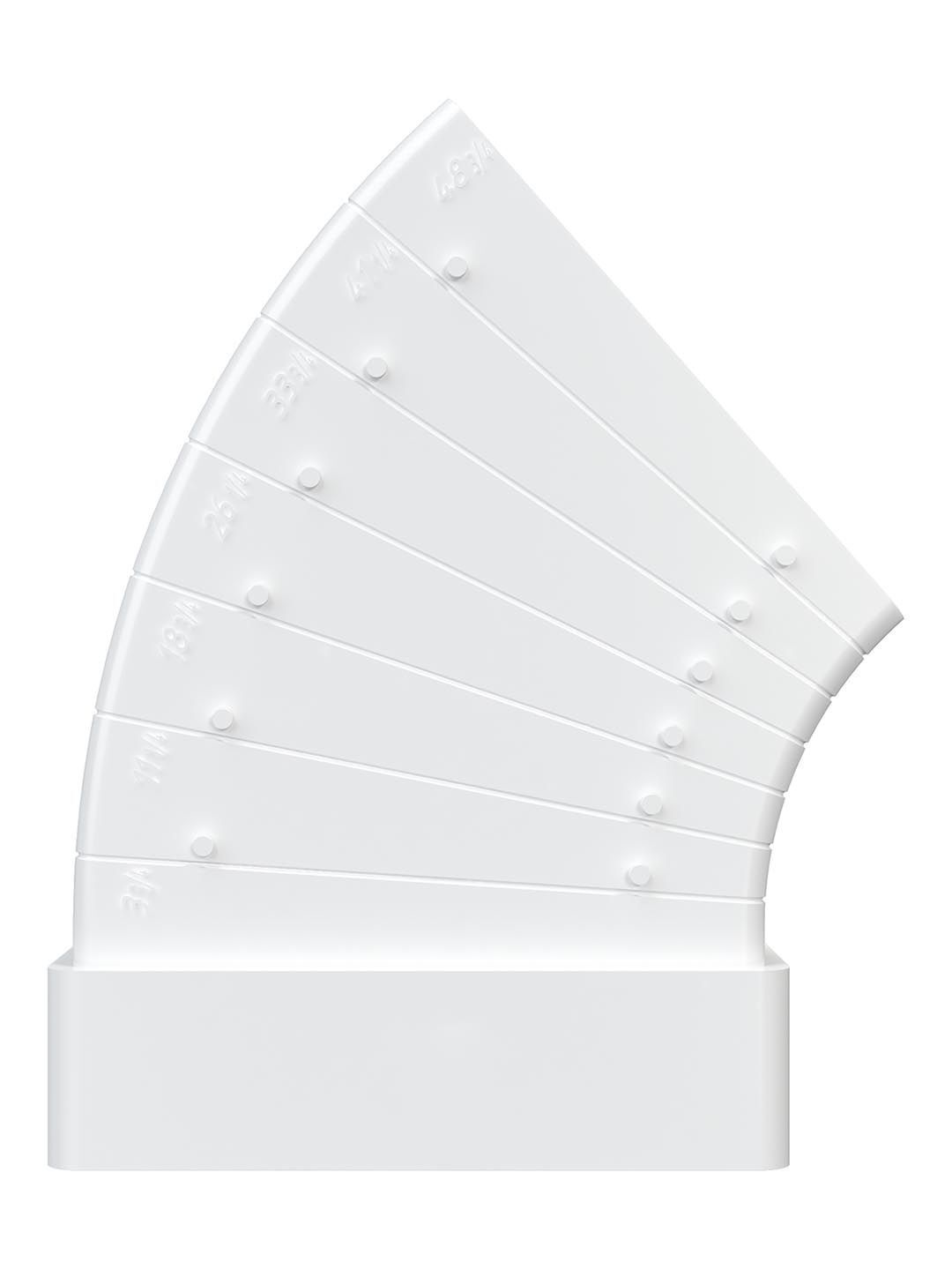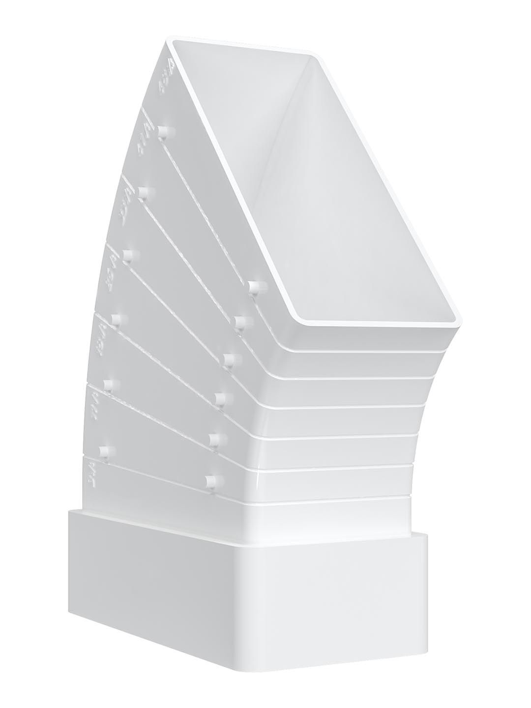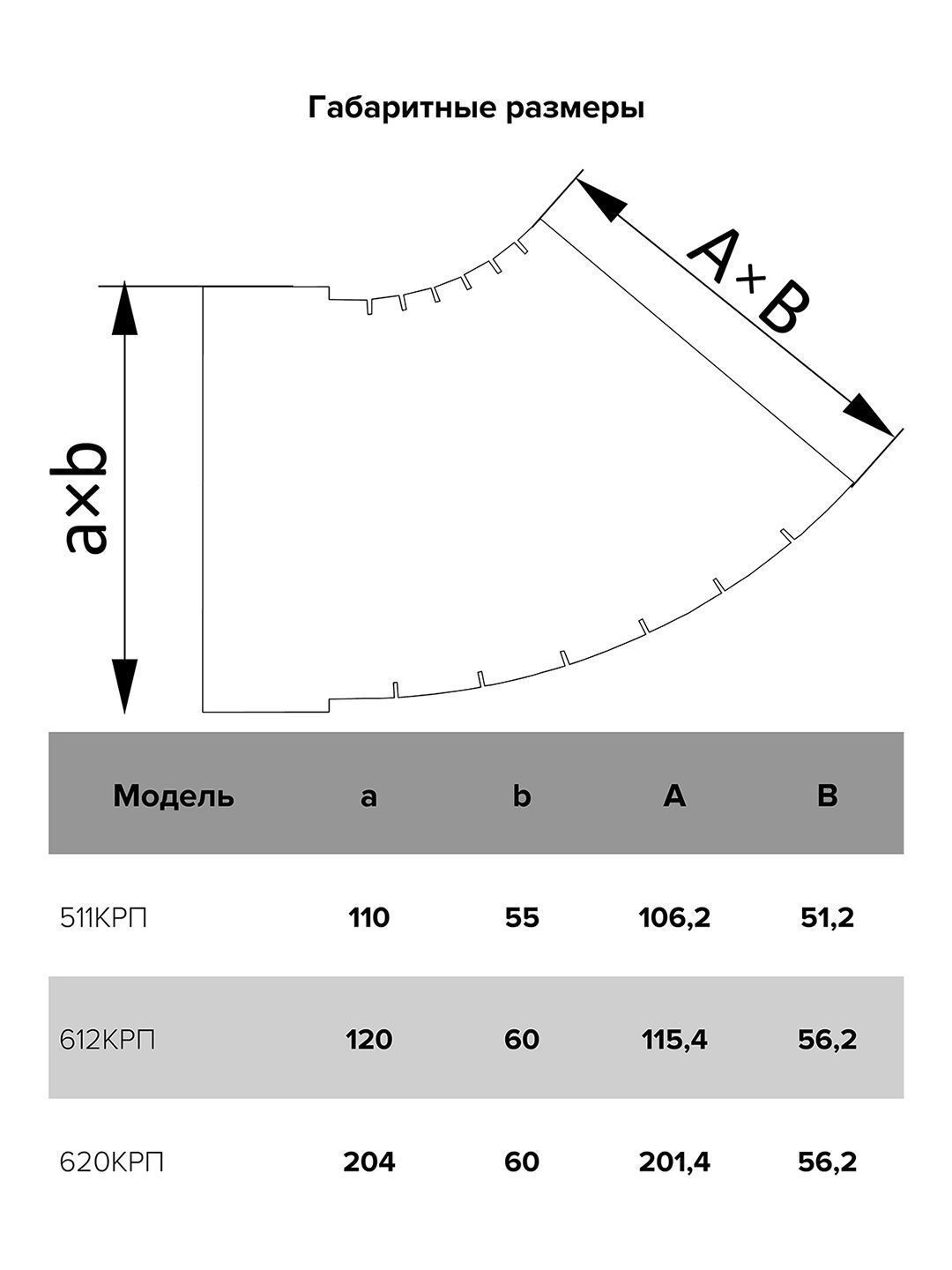 Колена разноугловые горизонтальные плоские КРП применяются для соединения воздуховодов соответствующего сечения под углом от 3° до 48°. В зависимости от выбранного угла одна сторона соединителя подрезается. C каналами соответствующего сечения соединяются напрямую.