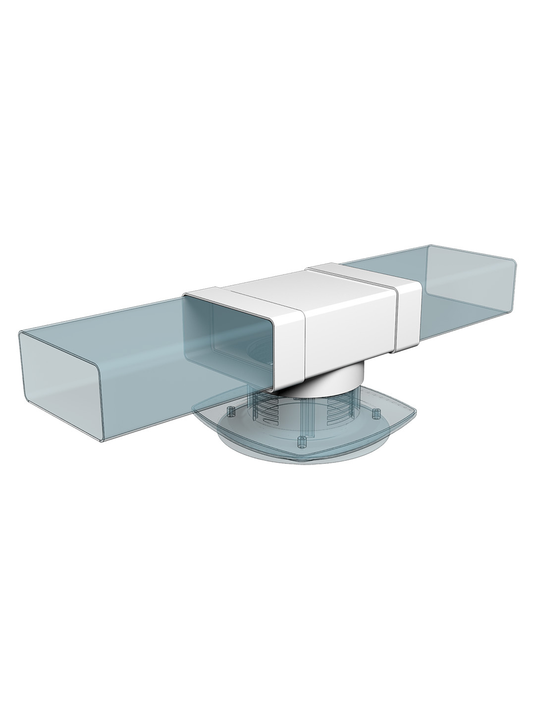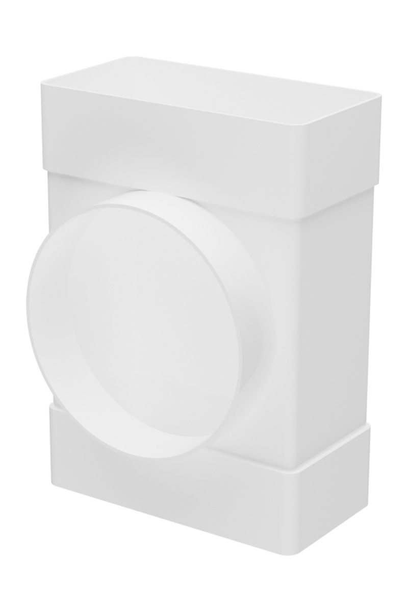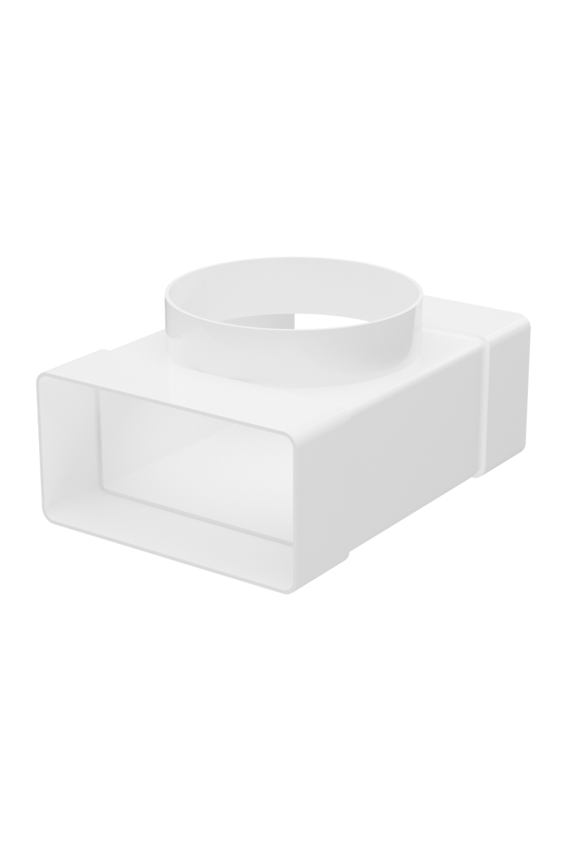 Тройник с выходом на фланец. Для соединения двух плоских воздуховодов и анемостата, диффузора, решетки или вентилятора с фланцем.