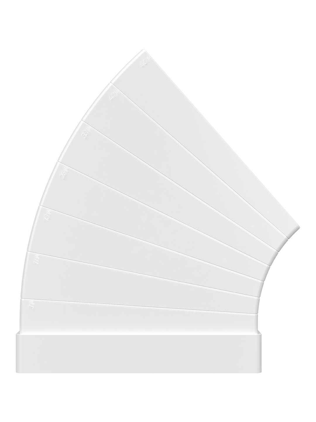 Колена разноугловые горизонтальные плоские КРП применяются для соединения воздуховодов соответствующего сечения под углом от 3° до 48°. В зависимости от выбранного угла одна сторона соединителя подрезается. C каналами соответствующего сечения соединяются напрямую.
