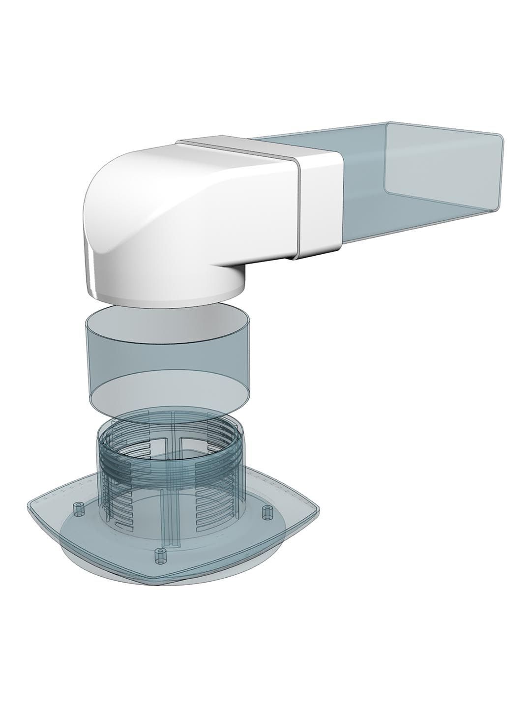 Переходник для соединения напрямую плоских воздуховодов с прямоугольными и круглыми под углом 90°.