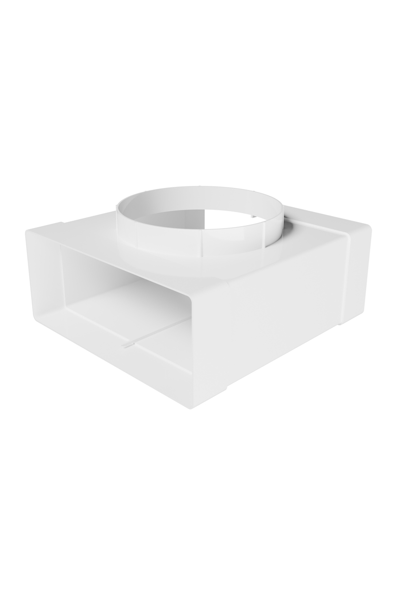 Тройник с выходом на фланец. Для соединения двух плоских воздуховодов и анемостата, диффузора, решетки или вентилятора с фланцем.