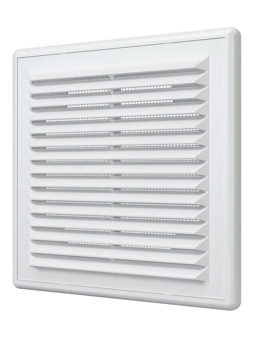 Вентиляционная решетка Р состоит из двух частей: рамки и решетки с жалюзи. Решетка не крепится непосредственно к стене или к потолку, а вставляется в рамку, которая монтируется на поверхности. Это позволяет легко снимать изделие для обслуживания: необходимо достать решетку из рамки, а затем также легко вернуть на место. Решетка оснащена наклонными жалюзи, которые помогают скрыть вентиляционный выход, а также антимоскитной сеткой для защиты от насекомых. Решетки Р представлены также в коричневом, бежевом и черных цветах.