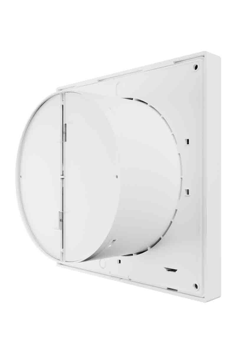 Модель оснащена обратным клапаном с пластиковыми створками и четырьмя защелками, за счет которых клапан надежно фиксируется на фланце вентилятора; платой управления EТ с электронным таймером и датчиком влажности. Это позволяет настроить время работы с помощью переключателей. Интервалы работы 5, 15 или 30 минут. По умолчанию после нажатия на выключатель устройство отработает 15 мин. При необходимости можно изменить интервал работы либо отключить таймер. Датчик влажности в типовом режиме включится автоматически, когда зафиксирует влажность свыше 70 % и выключится после ее снижения. Также возможно настроить следующие значения влажности: 50 % или 90 %. Либо отключить встроенный датчик влажности совсем.