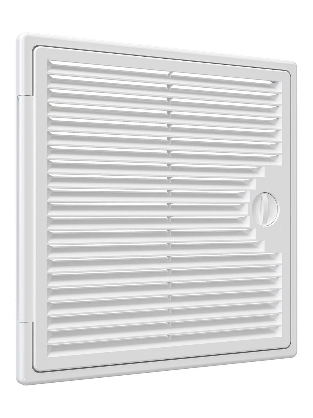 Пластиковые накладные вентилируемые люки-декофоты ДФ устанавливаются на поверхность стены. Оснащены ручкой-задвижкой для удобного открытия дверцы. ДФ является декофотом, т. е. совмещает в себе функции люка и решетки. Благодаря этому объединению не нарушается естественная вентиляция пространства. Декофот монтируется поверх стены или другой поверхности. Благодаря этому ДФ можно устанавливать на ревизионные отверстия с неровными краями – главное, чтобы размеры отверстия были меньше монтажных размеров люка. Если люк требуется установить выше уровня глаз, рекомендуется установка жалюзи вверх, так чтобы они скрывали отверстие. Если же люк требуется установить ниже уровня глаз, то жалюзи должны быть направлены вниз.