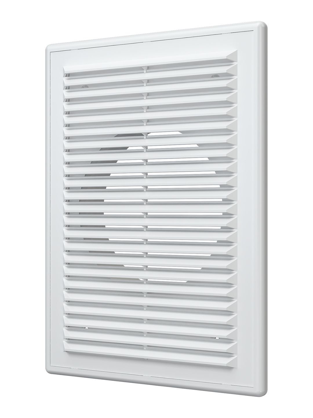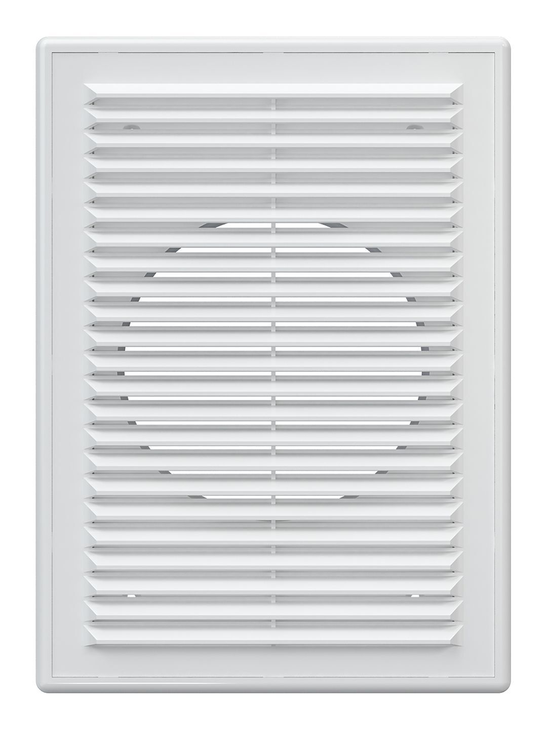 Решетка серии RF монтируется с круглым пластиковым воздуховодом при помощи фланца. Благодаря разъемной конструкции для обслуживания не требуется полный демонтаж, достаточно лишь отделить решетку от рамки. Крепление осуществляется с помощью шурупов. Имеет наклонные жалюзи, которые скрывают вентиляционное отверстие.