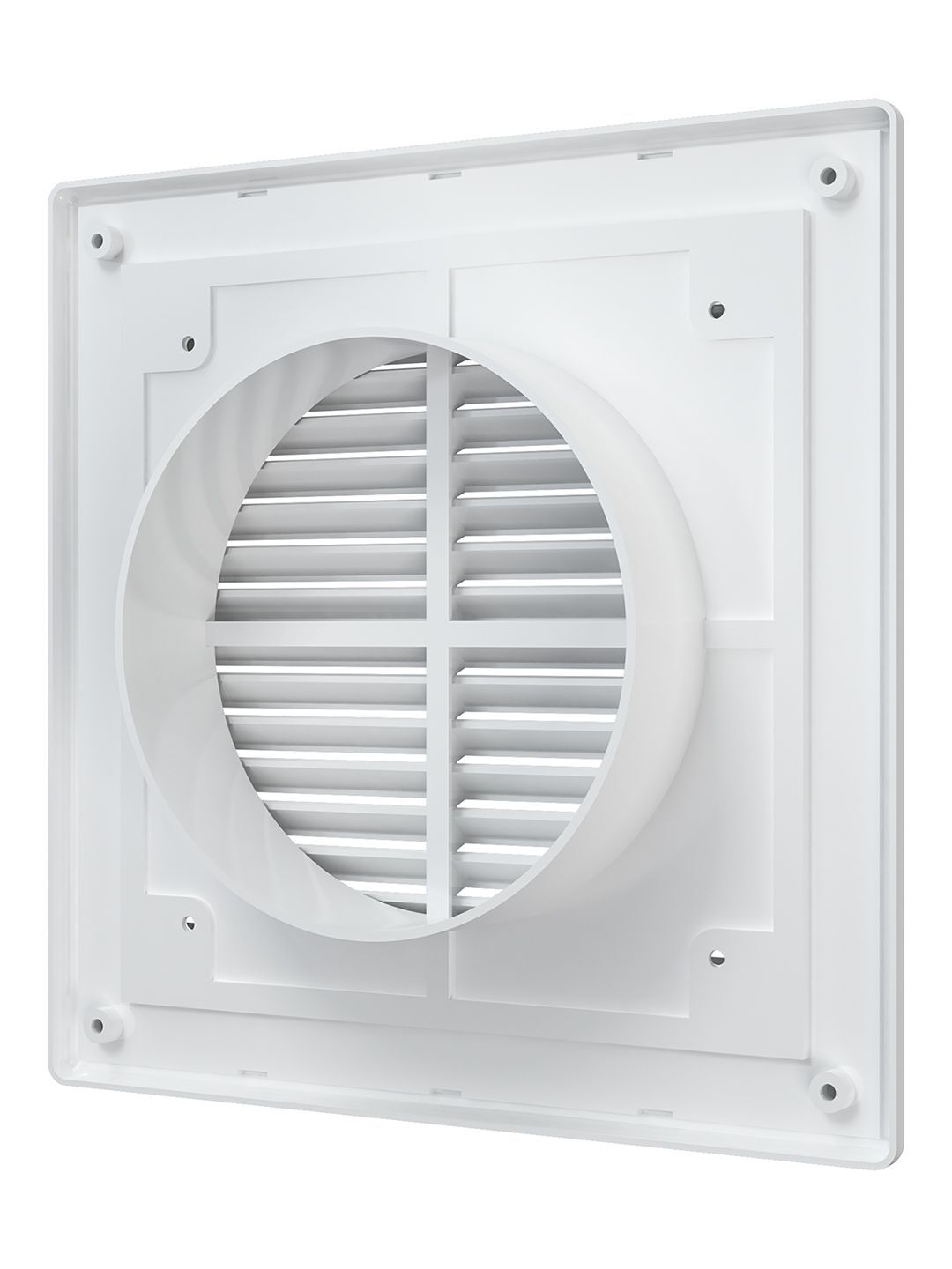 Решетка серии RF монтируется с круглым пластиковым воздуховодом при помощи фланца. Благодаря разъемной конструкции для обслуживания не требуется полный демонтаж, достаточно лишь отделить решетку от рамки. Крепление осуществляется с помощью шурупов. Имеет наклонные жалюзи, которые скрывают вентиляционное отверстие.