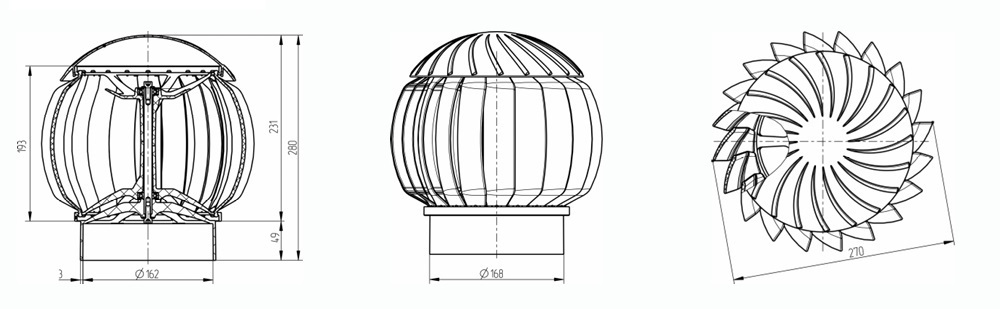Ротационная вентиляционная турбина 160 Gervent из АБС – пластика – продукт, зарекомендовавший себя на рынке вентиляции и аэрации кровли. Изготовлен из ударопрочного атмосферостойкого АБС-пластика с УФ-стабилизацией.