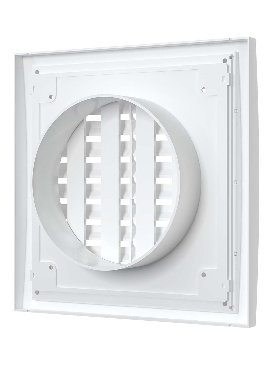 RRPF имеет механизм регулирования расхода воздуха. При помощи флажка можно ограничить или перекрыть его приток или вытяжку. Состоит из пяти элементов, полностью разбирается. Данные решетки могут монтироваться как самостоятельно при помощи саморезов, так и с воздуховодами соответствующего диаметра, используя монтажный фланец. RRPF имеет наклонные жалюзи, которые помогают скрыть вентиляционный выход. Изготовлена из высококачественного пластика, что обеспечивает высокие эксплуатационные характеристики в течение всего срока службы.