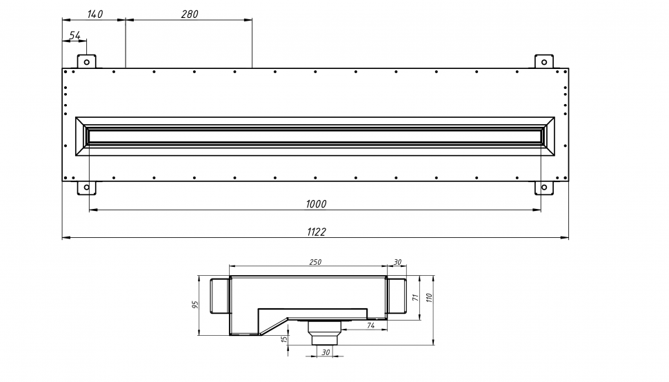 Flexag RAN-1-1000-30-W щелевой диффузор с низкопрофильной КСД под натяжной потолок, белый