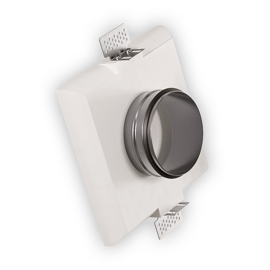 Гипсополимерный диффузор квадратной формы для приточной и вытяжной системы вентиляции. Устанавливается в воздуховод соответствующего диаметра. Вентиляционный отвод диффузора имеет уплотнительную ленту, что позволяет легко и герметично стыковать его с воздуховодом. Монтируется в потолки из гипсокартона. Все необходимые крепёжные элементы входят в комплект.