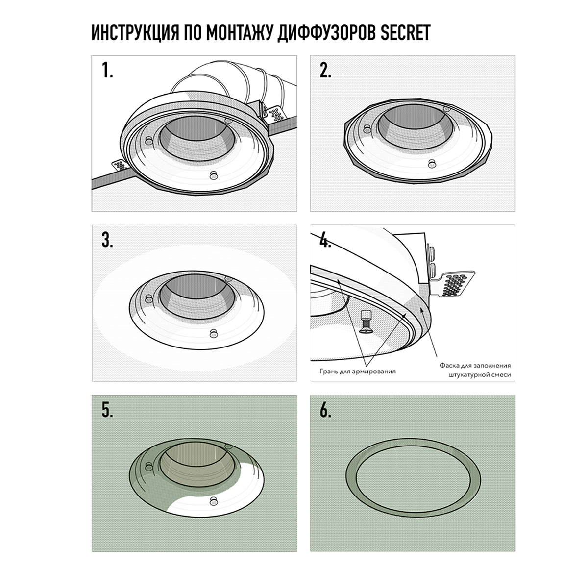 Диффузор под покраску скрытого монтажа SECRET SOFT FRAME D200мм