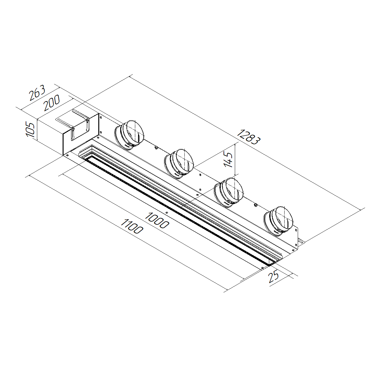 - Размеры щелевого диффузора: 1000 x 25 мм (высота диффузора 40 мм)