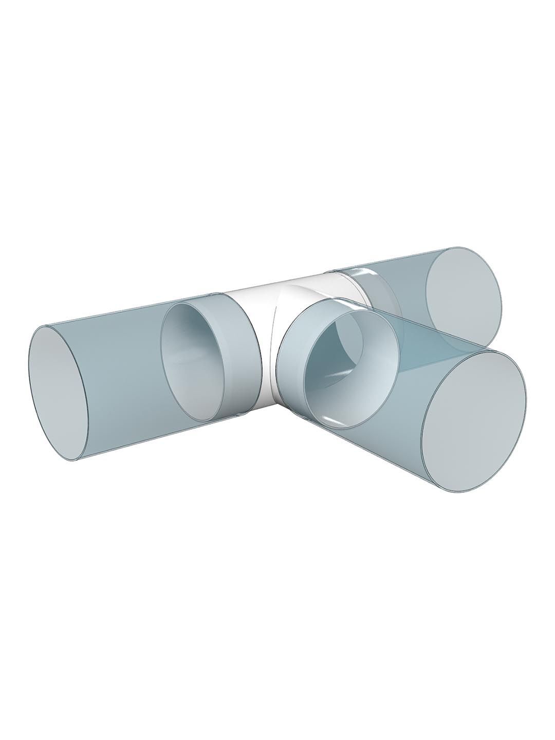 Для соединения воздуховодов соответствующего диаметра. Для организации сложных систем вентиляции, отводов. При помощи тройников соединяются три воздуховода одного типа и одного сечения.