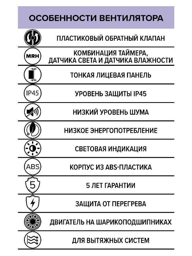 — плата управления MRH с таймером, фотодатчиком и датчиком влажности (модели SLIM 4C MRH, SLIM 5C MRH). В типовом режиме: датчик влажности включается автоматически, когда фиксирует влажность свыше 70 % и выключается после ее снижения; режим проветривания включается через 12 часов и работает 30 минут; после отключения света вентилятор работает 15 минут.