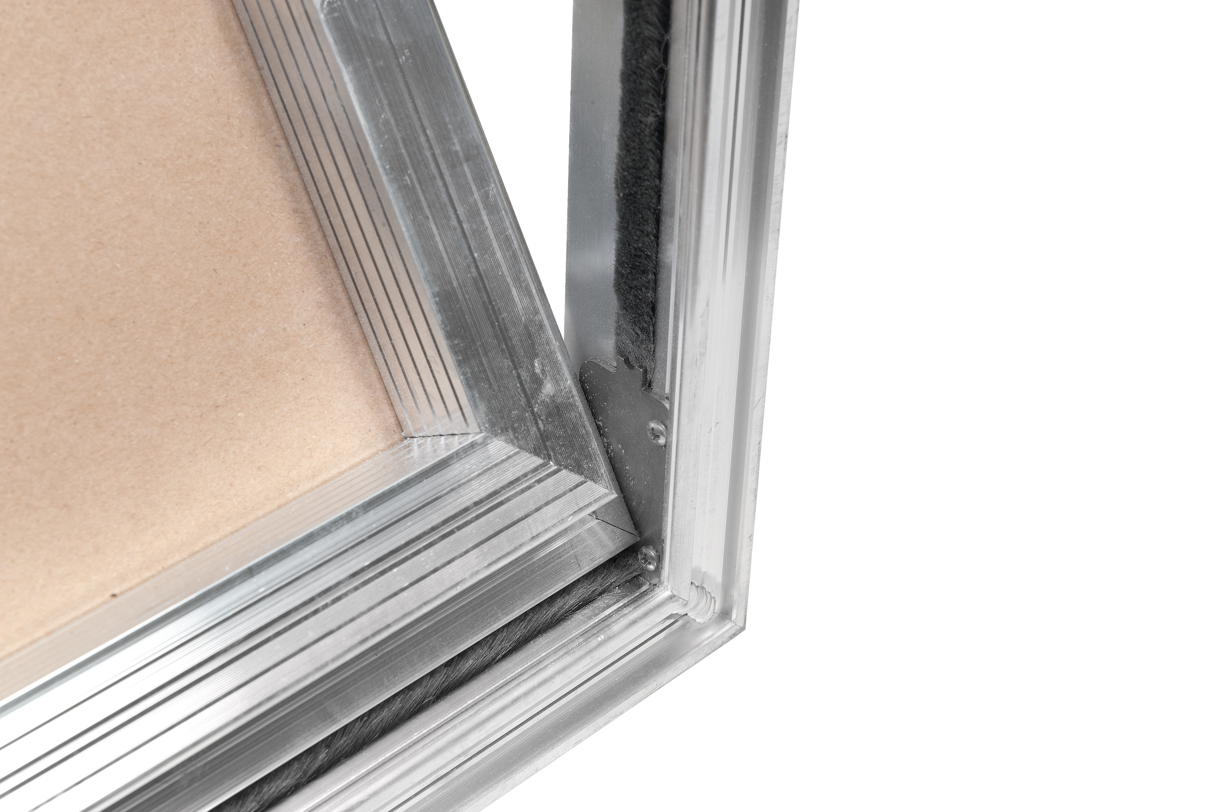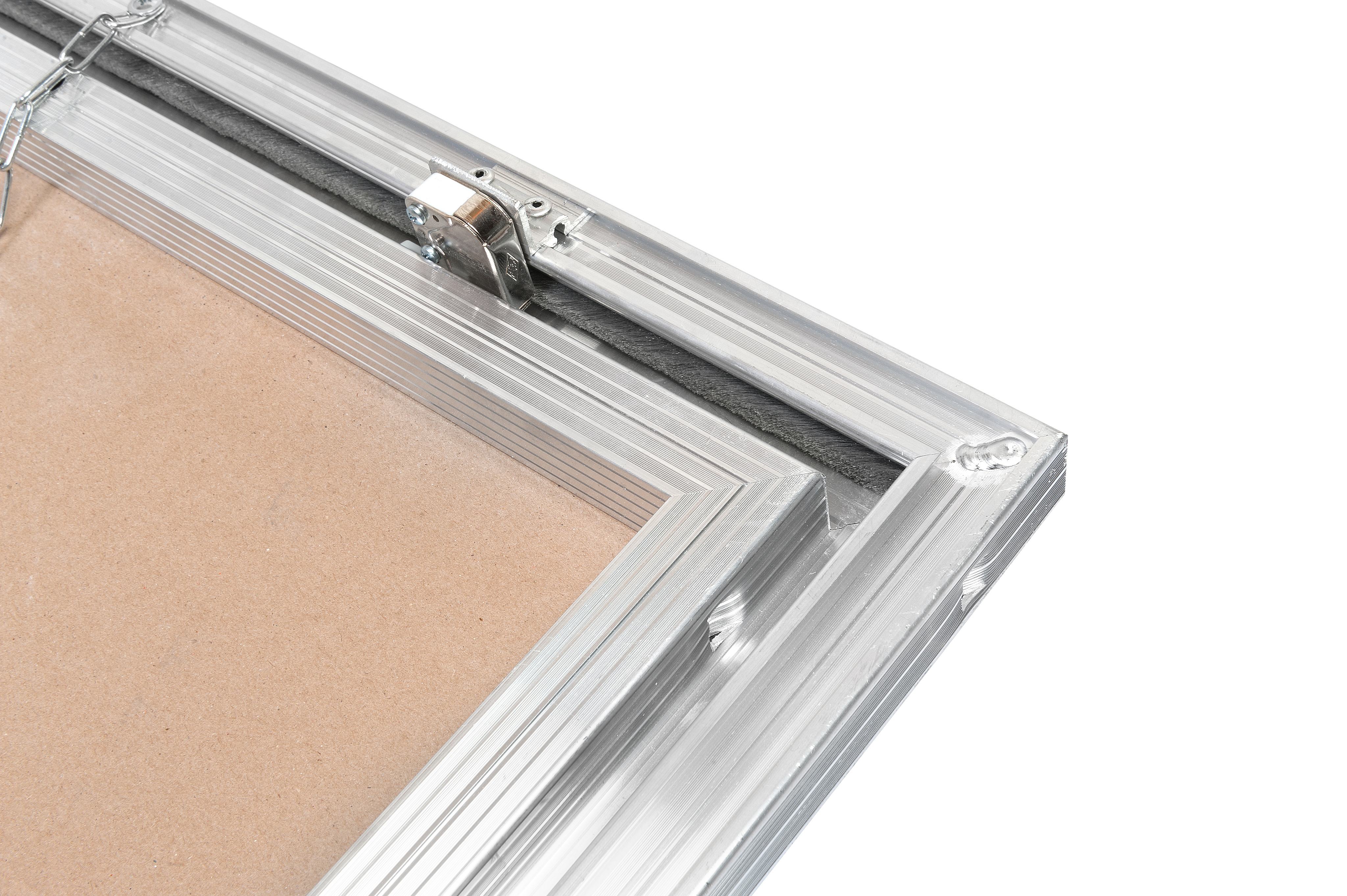 Сложный профиль рамы люка и дверцы обеспечивает дополнительную жесткость и прочность конструкции.