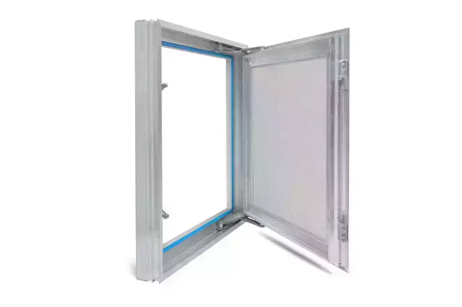 Рама люка для ревизии «Фурор» выполнена из алюминиевого профиля Г-образного в сечении для максимальной жесткости и удобства монтажа в уже подготовленный заранее проем. Дверца люка изготавливается из алюминиевого профиля Т-образной формы, переменного сечения, с выраженными ребрами жесткости, что делает её конструкцию более жесткой. Так как немаловажно исключить перекосы конструкции дверцы, чтобы не допустить деформации наклеенных на нее материалов. В отличие от наших конкурентов, толщина стенок алюминиевого профиля у нас по-прежнему 2 мм и более.