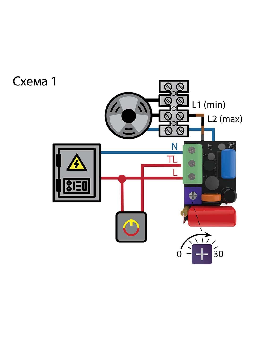 Благодаря опции АТ вентилятор может работать с отсрочкой выключения по таймеру от 0 до 30 минут (при подключении по трехпроводной схеме).