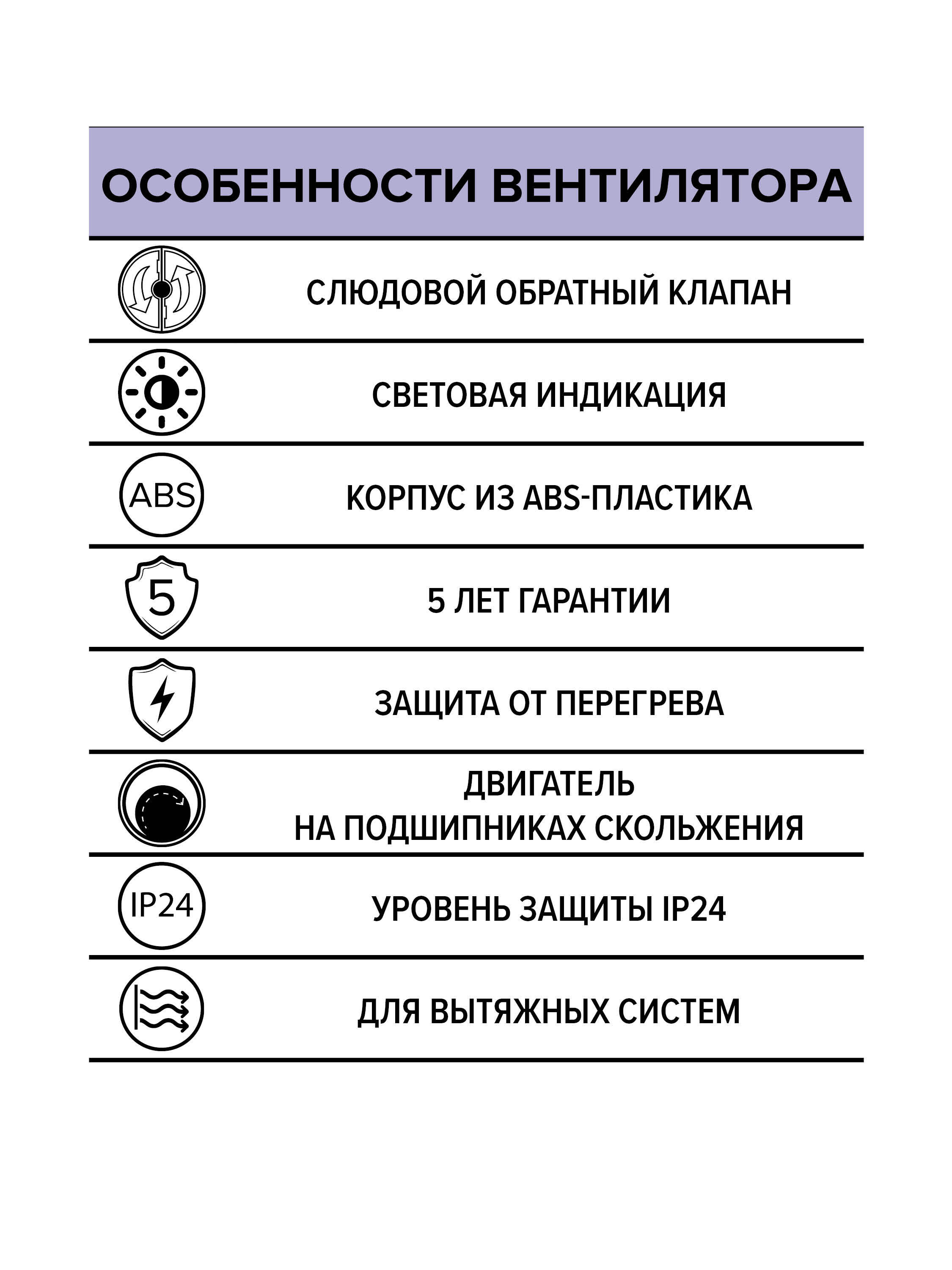 Прямоугольная лицевая панель подходит для установки в вентиляционные шахты с вертикальным проемом, которые часто встречаются в домах советской постройки. В ассортименте вентиляторы с фланцем диаметром 100 и 125 мм. Монтажные размеры на всех моделях одинаковы. Уровень защиты – IP24.