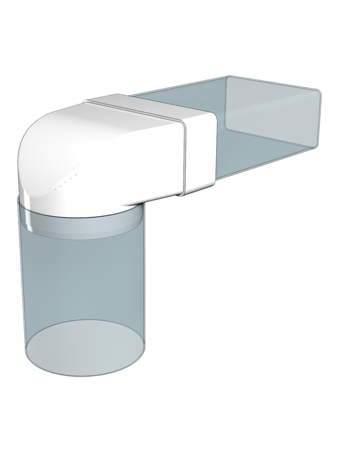 Переходник для соединения напрямую плоских воздуховодов с прямоугольными и круглыми под углом 90°.