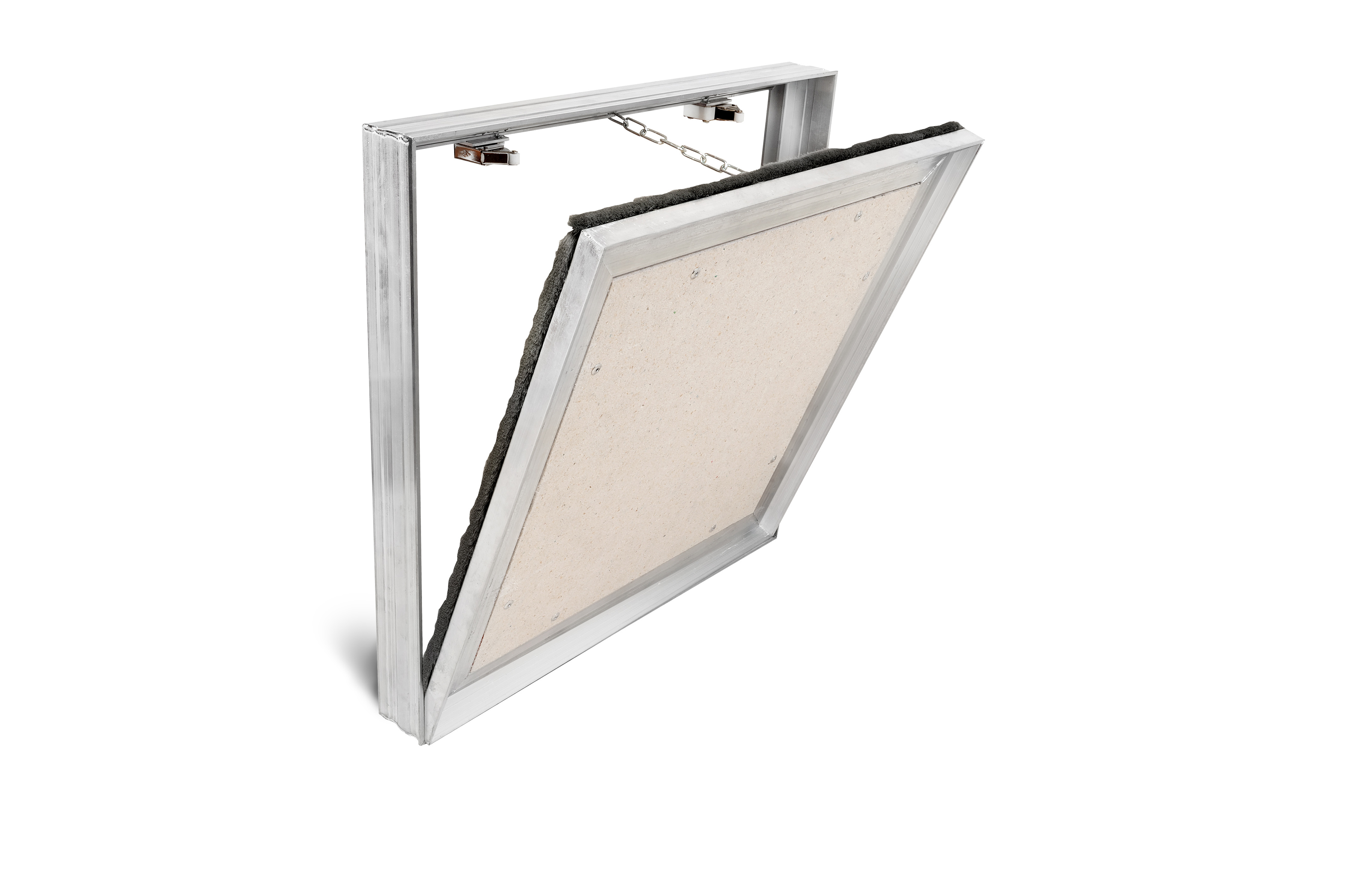 Алюминиевый профиль специальной формы, переменного сечения, разработанный специалистами нашей компании, делает данную конструкцию прочной и надежной в эксплуатации. Щеточный уплотнитель, вклеенный в дверцу, в специальный хвостовик, защищает от пыли. Рамка дверцы из алюминиевого профиля люка модели «Вектор Про Кант» по умолчанию заполняется ГВЛ толщиной 10 мм. При необходимости, по желанию заказчика или особенности отделки модели, возможны следующие изменения и дополнения в конструкцию люка: